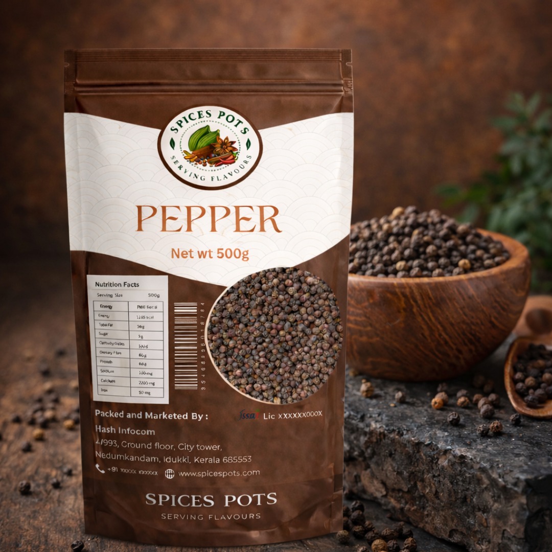 Premium High Quality Black Pepper from Spices Pots comes from the mist-covered Idukki high ranges of Kerala, a region renowned worldwide for producing pepper with exceptional strength and aroma. Carefully selected from our farmers, these peppercorns are naturally dried to preserve their essential oils, bold heat, and deep earthy character.